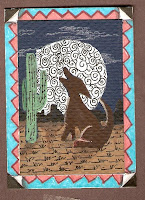 This is the first of six cards I will be doing for the Southwest Swap at DoodlersHaven. I used acrylic paints in the background over dark blue paper. Doodles are done with pitt pens.